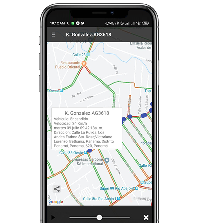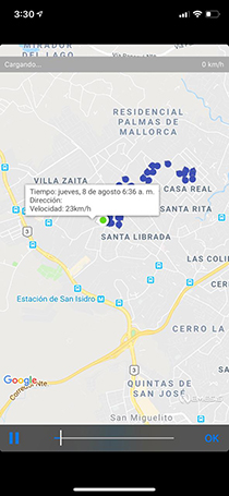 Le permitirá ver sobre el mapa en tiempo real el desplazamiento de su vehículo.