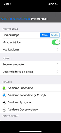 • Siga en tiempo real el desplazamiento de su vehículo, visualice las paradas y velocidad