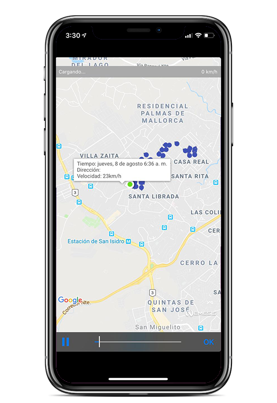 Le permitirá ver sobre el mapa en tiempo real el desplazamiento de su vehículo.